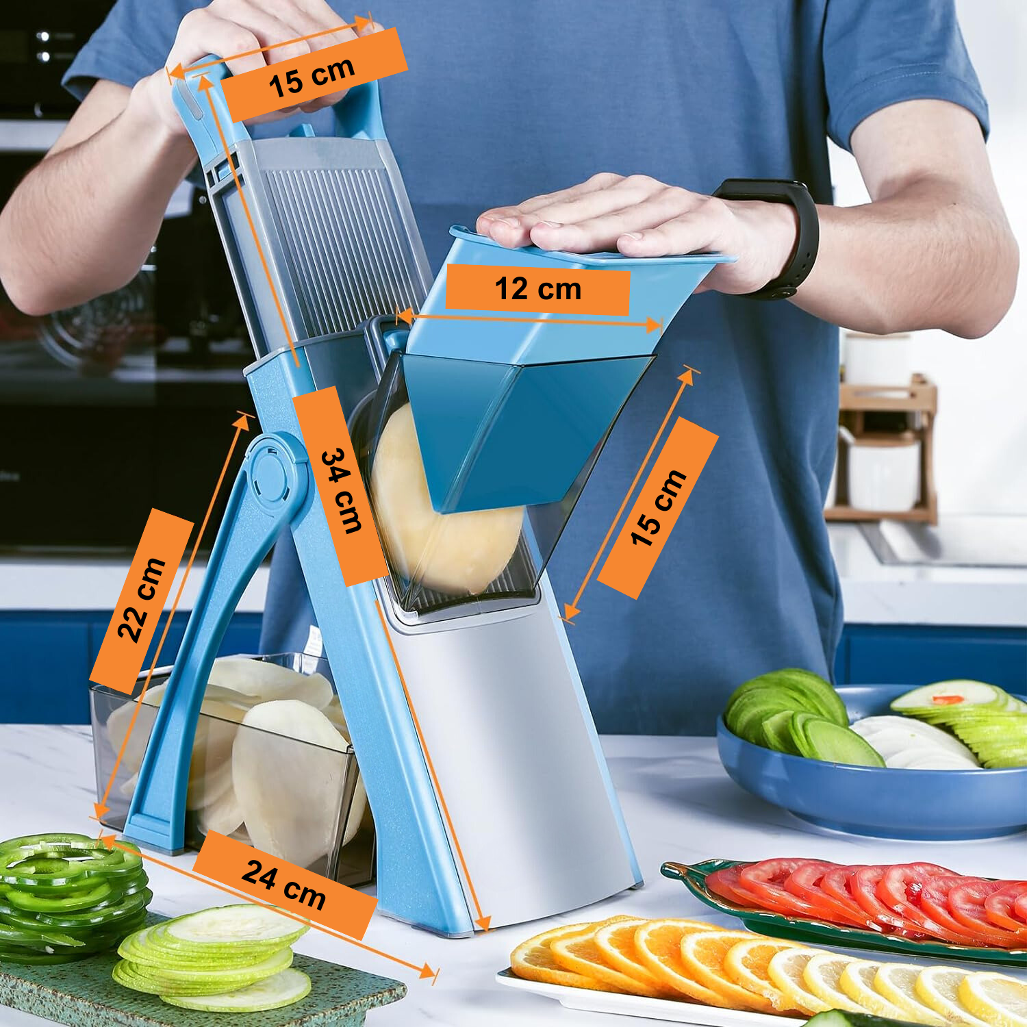 Despídase de los cortes desiguales que arruinan su cocina. Con el cortador Cut Chef obtendrá siempre rodajas perfectas y uniformes. Se acabaron los problemas con los cuchillos y los resultados irregulares. Es rápida, fácil y segura de usar, haciendo que su experiencia en la cocina sea más suave y agradable. Tanto si prepara ensaladas, patatas fritas o platos elaborados, Cut Chef es su nueva mejor amiga en la cocina.